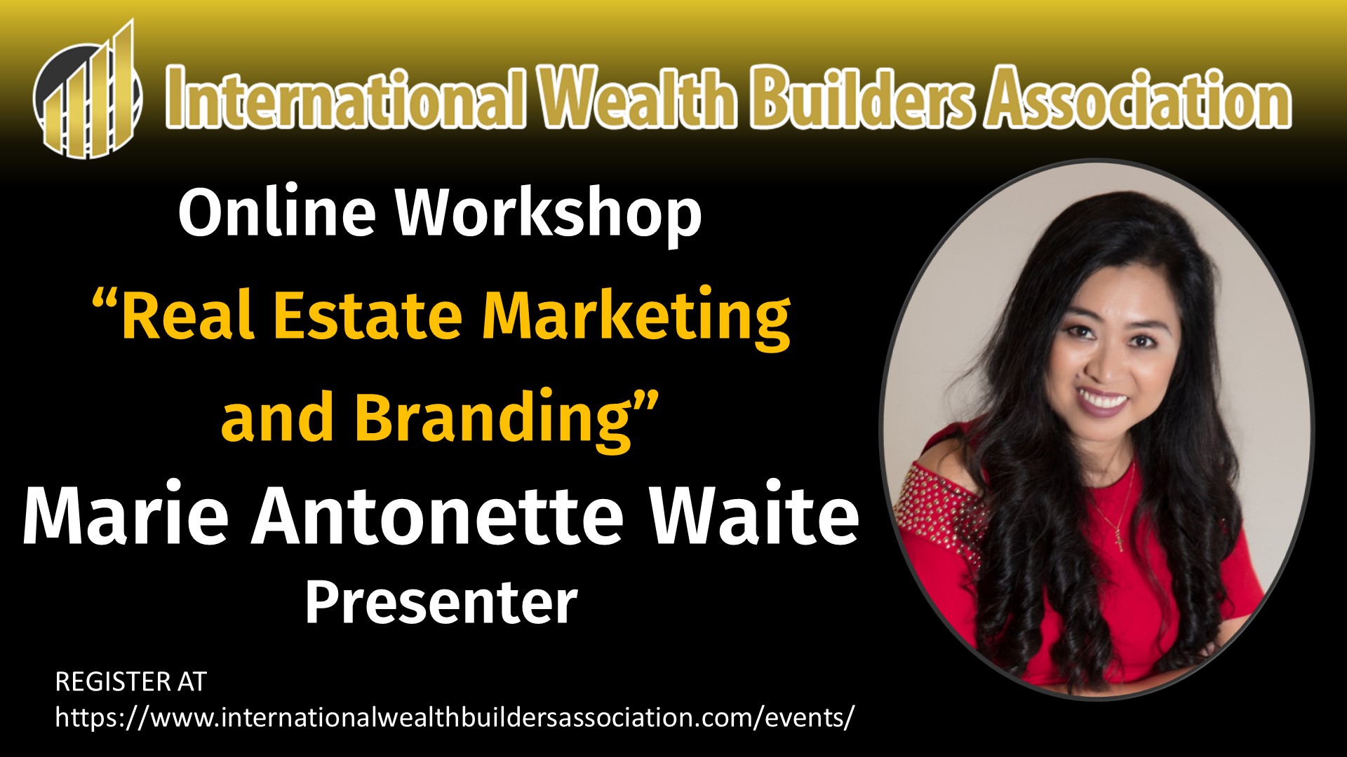 Marie Antonette Waite, a well-known real estate marketing and branding expert, conducts workshops aimed at helping real estate investors enhance their marketing strategies and build strong brands.